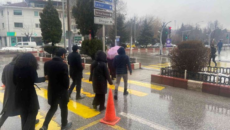 Afyonkarahisar’da beklenen yağmur yağışı gece geç saatlerde başlarken, yağış günün aydınlanması ile etkisini arttırdı.