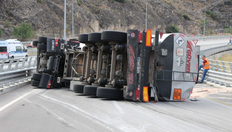 Kaza nedeniyle kapanan yol tankerin vinçlerle kaldırılmasının ardından tekrar trafiğe açıldı.