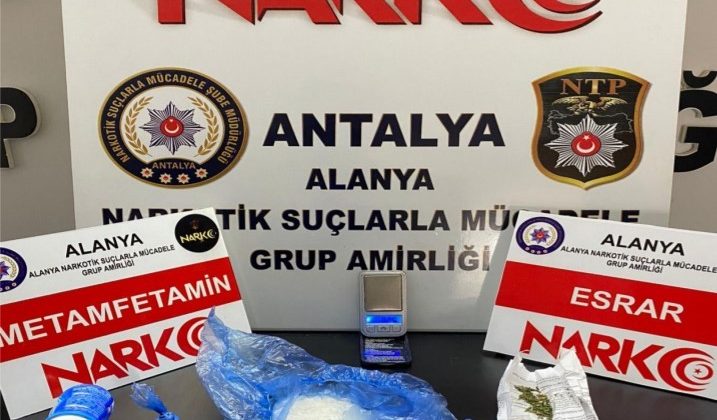 Alanya’da 26 Eylül Pazar günü Narkotik Suçlarla Mücadele Grup Amirliğince yapılan çalışmalar kapsamında; Y.P. ve H.M. isimli şahısların Ş.P. isimli şahıstan uyuşturucu madde aldıkları belirlendi. Şahıslar, Cikcilli Mahallesi 215. sokakta üzerinde yakalandı. Şahısların üzerinde 11,59 gram metamfetamin maddesi ele geçirildi. Ş.P. isimli şahsın ikametinde alınan arama kararına istinaden yapılan aramada 19,43 gram metamfetamin maddesi, 0,84 gram esrar maddesi ve 1 adet hassas terazi ele geçirildi. Olay ile ilgili Y. P. ve H.M. isimli şahıslara Uyuşturucu Madde Kullanmak suçundan işlem yapıldı. Yapılan işlemin ardından şahıslar serbest bırakıldı. Ş.P. isimli şahsa ise Uyuşturucu Madde Ticareti Yapmak suçundan işlem yapıldı. Ş.P., adliyeye sevk edildi.