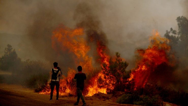 Antalya’nın Manavgat ilçesinde devam eden orman yangınında yola kadar çıkan alevleri söndürmeye çalışan itfaiye erleri, alevlerin bir anda bulundukları bölgede yükselmesiyle büyük tehlike atlattı.