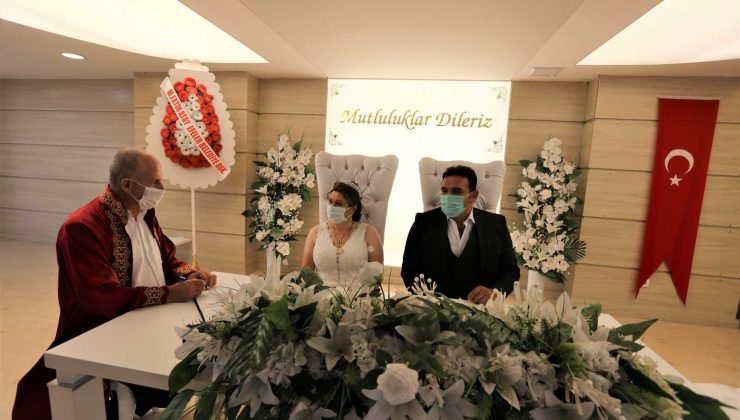 İçişleri Bakanlığı’nın 1 Haziran 2021 tarihli genelgesi gereği nikahlar pandemi tedbirlerine uyularak gerçekleştiriliyor. Alanın büyüklüğüne göre sınırlı sayıda davetli kabul edilen nikâh törenlerinde 6 metrekare başına 1 davetliye izin veriliyor.
