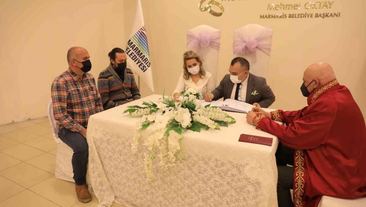 MUĞLA (İHA) – Muğla’nın Marmaris ilçesinde 02 Şubat 2022 tarihinde hayatını birleştirmek isteyen çiftler Marmaris Belediyesi Evlendirme Dairesi’nde yeni yaşamlarına ilk adımı attı.