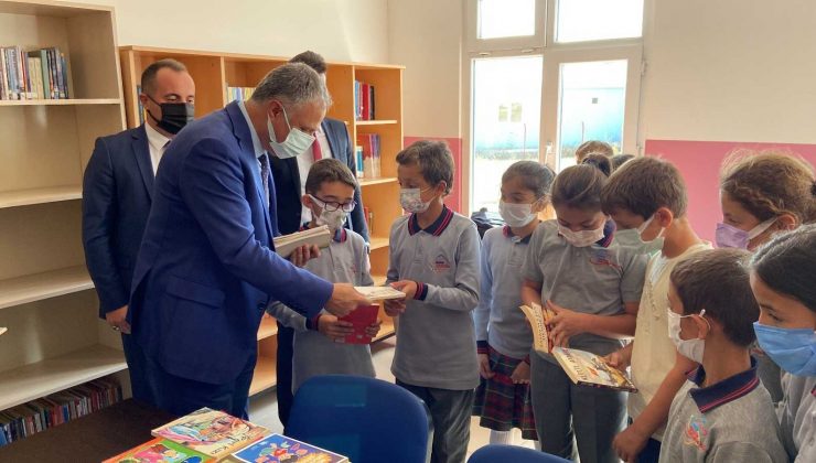 Bayburt’un Adabaşı köyünde köy okulunun kütüphanesine bağışlanan kitaplar teslim edilerek öğrencilere de kitap hediye edildi.