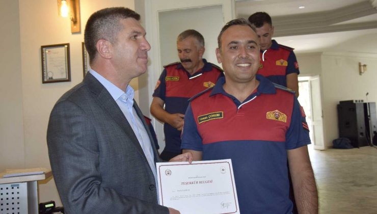 İtfaiyecilere başkandan teşekkür belgesi