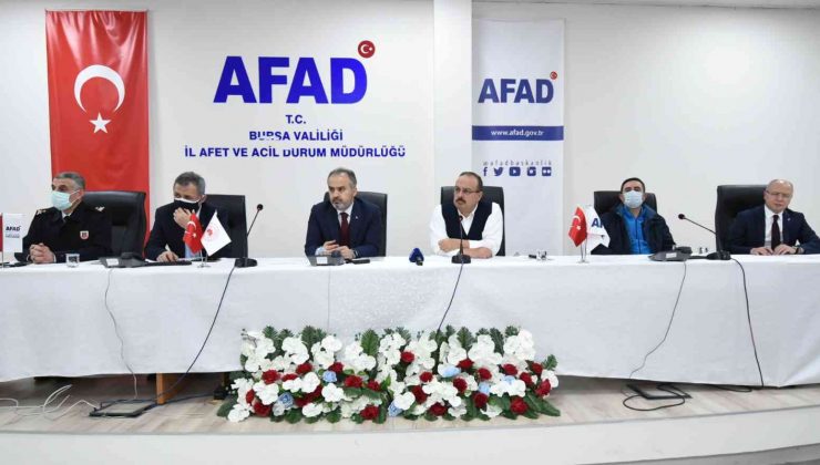 İl Afet ve Acil Durum Müdürlüğü (AFAD) koordinasyonunda yürütülecek karla mücadele çalışmaları, kriz merkezinde anlık olarak değerlendiriliyor. Gecenin ilerleyen saatlerinde AFAD’a gelen Bursa Valisi Yakup Canbolat ve Büyükşehir Belediye Başkanı Alinur Aktaş, kentteki mevcut durum ve riskli bölgelerde yapılacak çalışmalar hakkında ilgili kurum amirlerinden bilgi aldı.