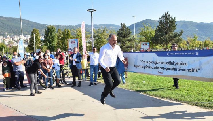 Bursa’da Büyükşehir Belediyesi tarafından düzenlenen Sokak Oyunları Şenliği renkli görüntülere sahne oldu. Şenlikte; Büyükşehir Belediye Başkanı Alinur Aktaş ip atladı