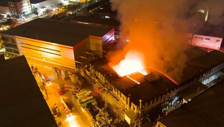 Bursa’daki kimyasal madde fabrikasındaki yangın havadan görüntülendi