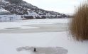 Yüzeyi yer yer buz tutan Sarısungur Göleti’nden kartpostallık kareler