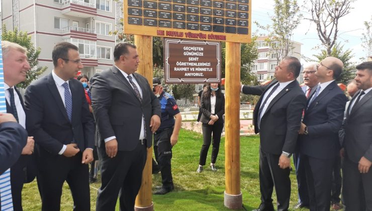 Konuşmaların ardından Şehit öğretmenler anıtı ve şehit öğretmenlerin künyelerinin de yer aldığı resim sergisi açıldı.