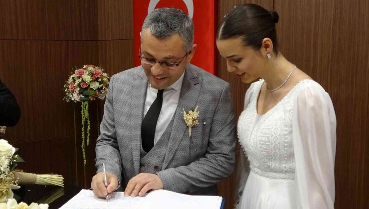 Özel günde hayatlarını birleştiren Mehmet Alp ve Şeval Öztürk çifti, uzun zamandır bugün tarihini beklediklerini söyledi. 2.2.22’nin kendileri için büyük bir anlam taşıdığını belirten Şeval Öztürk, “Bugün özellikle seçtiğimiz bir tarihti. Uzun zamandı bugünün gelmesini bekliyorduk. Bizim için güzel ve unutulmaz bir gün oldu. Anlamı çok büyük. İlerde çocuklarımıza da anı olarak kalır” dedi.