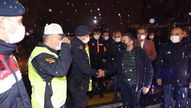 DÜZCE(İHA) – Düzce’de kar yağışının başlaması ile birlikte Vali Cevdet Atay beraberindekilerle birlikte yapılan çalışmaları yerinde inceledi. Kaza yapan vatandaşın yanına giderek geçmiş olsun diledi.