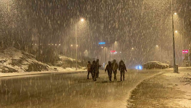 Düzce’de akşam saatlerinde kar yağışı etkili olmaya başladı. Lapa lapa kar yağışını gören sokağa çıktı.