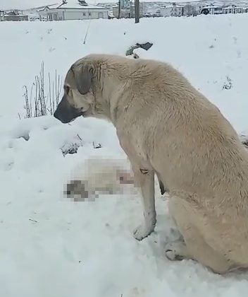Elazığ’da ölen yavrusunun başında saatlerce kar altında bekleyen anne köpek, görenleri duygulandırdı.