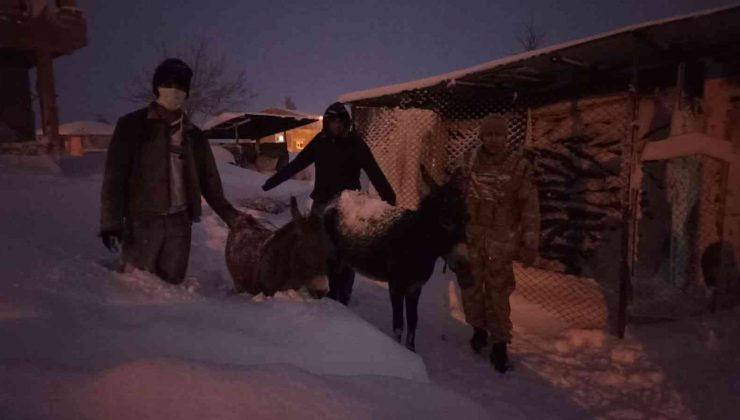 Elazığ’ın Arıcak ilçesinde kar altına donmak üzere olan başıboş eşekler belediye ve jandarma ekipleri tarafından kurtarıldı.