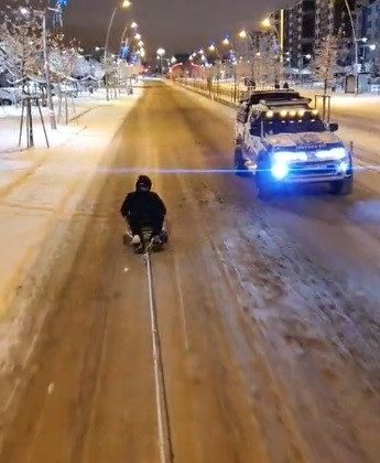 Erzurum’da dün gece şiddetli şekilde devam eden kar yağışı birçok vatandaşa çile olurken macera severlere eğlence oldu. Macera Off- Road Doğa Sporları Kulübü üyeleri lapa lapa yağan karın tadını 4×4 araçlarının arkasına bağladıkları lastikle karın keyfini asfaltta rafting yaparak çıkarttılar.