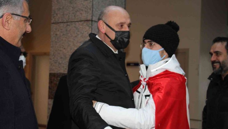 İlk kez olimpiyatlarda sürat pateni branşında Türkiye’yi temsil edecek olan Akar, sırtına bağladığı Türk Bayrağıyla havalimanından alkışlarla uçağa uğurlandı.