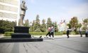 Büyükşehir Belediyesi önünde çelenk koyma töreni