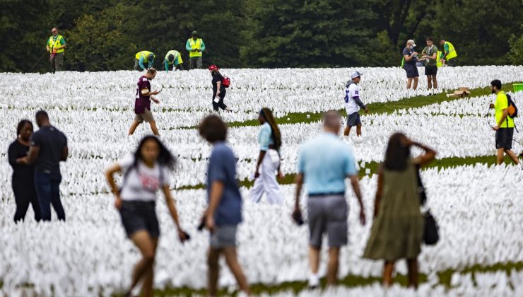 ABD’de korona virüs (Covid-19) salgınında hayatını kaybedenlerin anısına başkent Washington’da bulunan National Mall Park’ta yapılan serginin açılış töreni gerçekleştirildi. Covid-19 salgını nedeniyle yaşamını yitiren ABD’lileri temsilen 640 binden fazla beyaz bayraktan oluşan “In America: Remember” başlıklı sergi, 3 Ekim 2021’e kadar devam edecek. Sergide, tek tek elle yerleştirilen bayrakların yanı sıra 6 kilometrelik yürüyüş yolları ve ziyaretçilerin oturması için beyaz banklar da bulunuyor. Sergide, kişilerin çevrimiçi veya bireysel başvuruyla virüse yakalanan sevdiklerine bayrak adayabilmesine imkan tanınıyor.