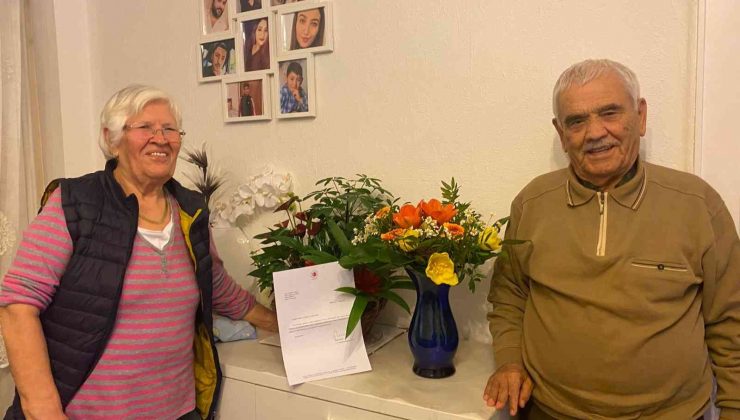Almanya’da Nürnberg Başkonsolosu Serdar Deniz, 65’inci evlilik yıl dönümlerini kutlayan Arslan çiftine mektup ve çiçek gönderdi.