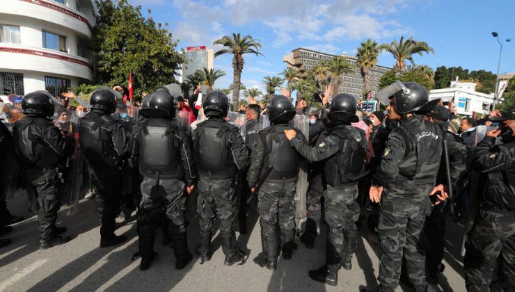 Tunus’ta Yasemin Devrimi’nin 11’inci yıldönümünde sokağa inen ve Devlet Başkanı Kays Said’i protesto eden göstericilere polis, tazyikli su ve biber gazı ile müdahale etti.