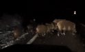 Köye giderken gece önüne çıkan domuz sürünü görüntüledi