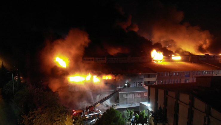 Öte yandan fabrikanın alev alev yandığı anlar ise drone ile havadan görüntülendi.