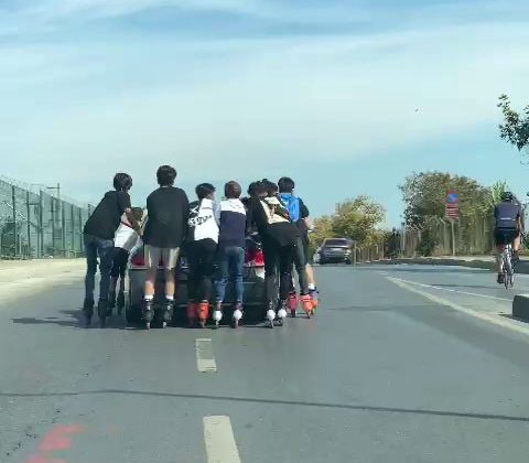 Bakırköy Florya’da dün öğle saatlerinde cep telefonu kamerasına yansıyan görüntüler ’bu kadarına da pes’ dedirtti. Görüntülerde patenli 7 gencin bir arabaya tutunarak trafikte ilerlediği görüldü. Gençlerin kask takmadığı da görülürken, bir vatandaş tarafından saniye saniye kaydedilen o görüntüler yürekleri ağızlara getirdi.