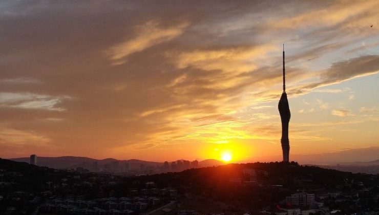 Sabahın ilk ışıklarıyla birlikte boğaza tutunmaya çalışan güneş hüzmeleri Çamlıca Kulesi ve Çamlıca Camii ile birleşti. İstanbul’un yeni oluşan silueti Çamlıca Kulesi gün doğumu ile buluştuğu o anlarda kendine hayran bıraktı. Bulutları kızıla boyayan güneş ışıklarının manzarasına eşlik eden Çamlıca Kulesi’nden geriye kartpostallık görüntüler kaldı. Oluşan eşsiz manzara ise havadan görüntülendi.