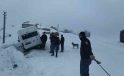 Kar yağışı nedeniyle minibüs şarampole yuvarlandı