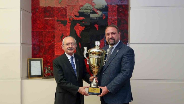 Çiğli Belediye Başkanı Utku Gümrükçü, Cumhuriyet Halk Partisi (CHP) Genel Başkanı Kemal Kılıçdaroğlu’nu ziyaret ederek Çiğli Belediyesi Bear Sailing Yelken Takımı’nın kazandığı Cumhurbaşkanlığı Kupası’nı takdim etti.