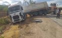 Yoldan çıkan tır vinç yardımıyla çıkarıldı