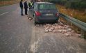 Ani fren yapan tırdaki taşlar arabanın üzerine savruldu