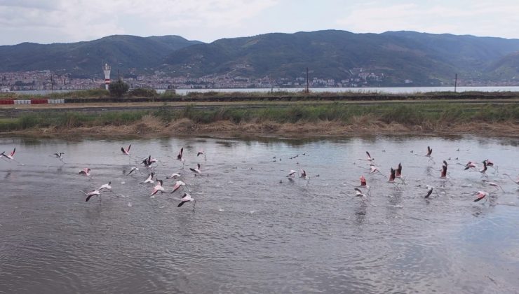 Körfez sahilinde bulunan Fener Gölü’nün misafirleri bu sene de flamingolar oldu.