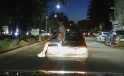 Otomobilin üzerinde tehlikeli yolculuk kamerada