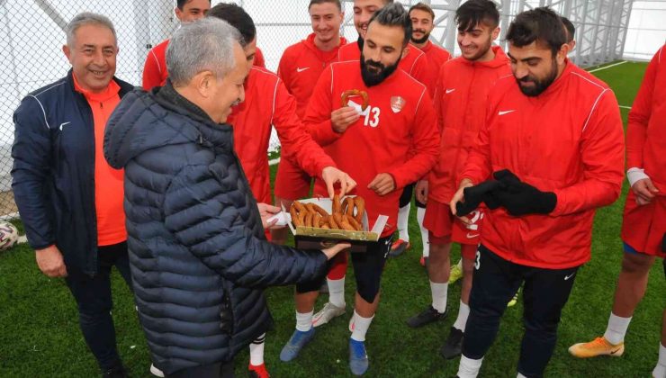 Konya’nın Akşehir İlçe Belediye Başkanı Salih Akkaya, çalışmalarını sürdüren Akşehirspor’un antrenmanını ziyaret ederek oyunculara tatlı ikram etti.