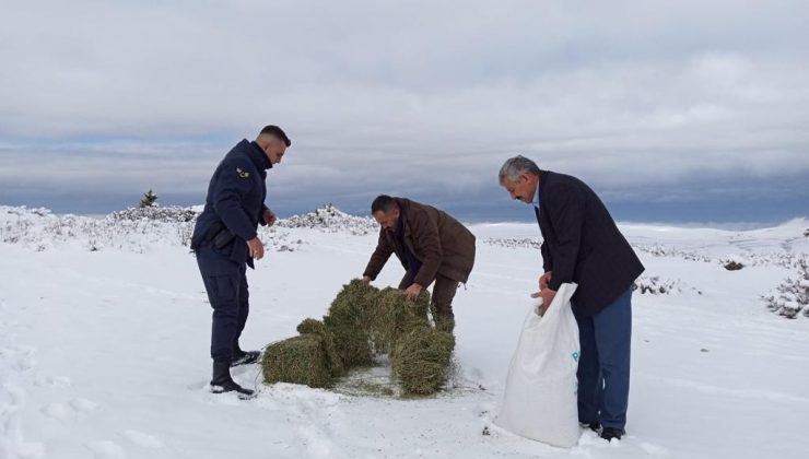 Konya’nın Halkapınar ilçesinde, bölgede yaşanan olumsuz hava koşulları nedeniyle beslenmekte güçlük çeken yaban hayvanları için doğaya yem bırakıldı.
