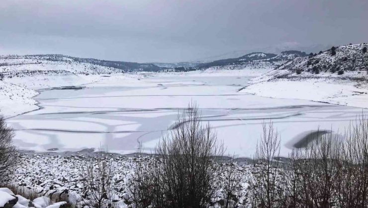 Kütahya’nın Çavdarhisar ilçesindeki baraj göletinin yüzeyinin buzla kaplandığı bildirildi.