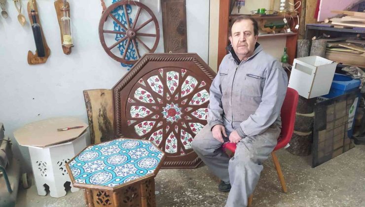 Kütahya’da ağaç oyma sanatçısı Selami Yıldırım, bir ilke imza atarak çiniyle ahşabı birleştirince ortaya muhteşem eserler çıktı. Ahşaptan yaptığı sehpa ve tavan göbeğine çiniyi de katan Yıldırım, eserlerinin yoğun ilgi gördüğünü kaydetti.