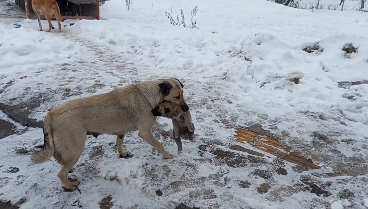 Hava sıcaklığının sıfırın altında seyrettiği Malatya’da yuvasını terk eden yavru köpeğin annesi tarafından sokaktan alınıp yuvasına götürülmesi cep telefonu kameraları ile görüntülendi.