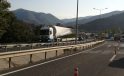 Rüzgar türbin kanadını taşıyan tır sıkışınca trafik felç oldu