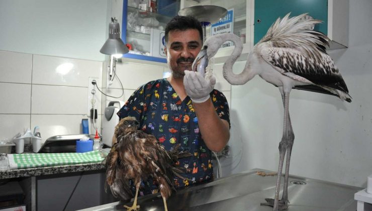 Mersin’in Silifke ilçesinde tellere çarpıp yaralanan flamingo ve aç kalıp uçamayan şahin için vatandaşlar seferber oldu. Yaralı flamingo ve şahin tedavi altına alındı.