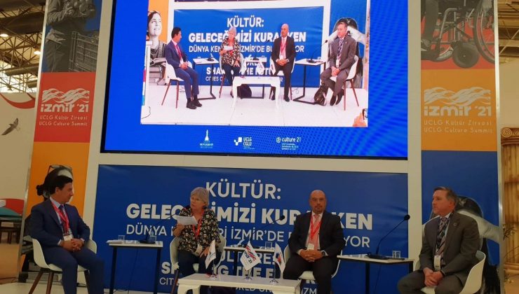 İzmir’in Rusya’nın Kazan ve Meksika’nın Merida kentlerini geride bırakarak ev sahipliği yapmaya hak kazandığı Dünya Belediyeler Birliği (UCLG) Kültür Zirvesi’nin açılışı 9 Eylül Perşembe günü İzmir Kültürpark’ta yapıldı. 9-11 Eylül tarihleri arasında üç gün sürecek ve “Kültür: Geleceğimizi Kurarken” temasıyla düzenlenen zirvede, 65 ülkeden kültür üreticileri buluşacak. 346’sı çevrim içi olmak üzere toplam 864 konuşmacı görüşlerini paylaşacak.