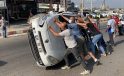 Park halindeki araca çarpan otomobil devrildi, vatandaşlar düzeltti