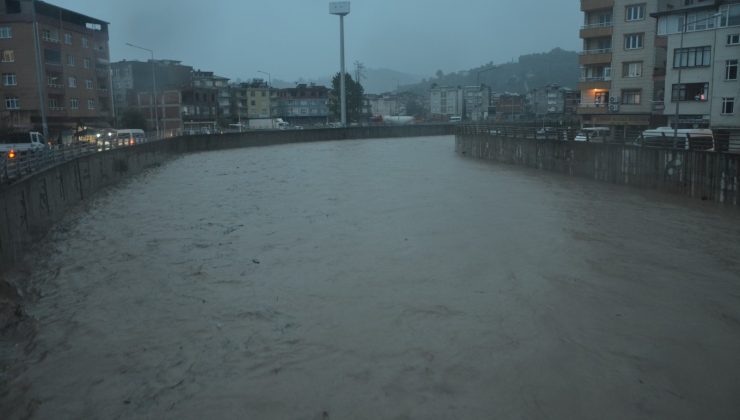 Ordu’nun Ünye ilçesinde öğleden sonra başlayan ve şiddetlenen yağmur sonrası sel meydana gelirken, birçok evi, araçları ve mahalleleri su bastı. İlçe merkezinden geçmekte olan Tabakhane Deresi’nin de debisi yükseldi.