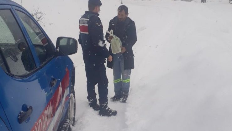 Osmaniye’nin Bahçe ilçesinde yoğun kar yağışı nedeniyle bebeğine almaya çıkamayan kadının yardımına jandarma ekipleri yetişti.