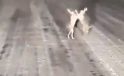 Karla kaplı yolda tavşanların kavgası gülümsetti