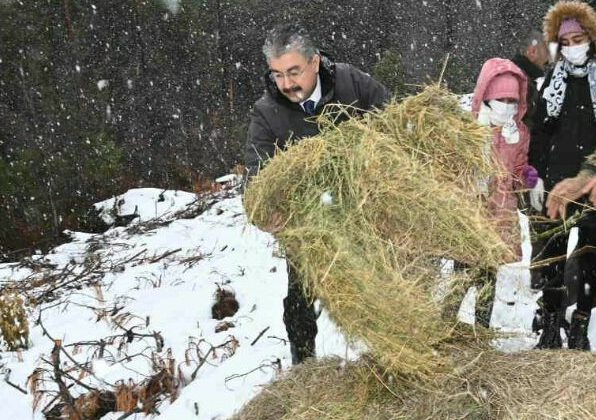 Osmaniye’nin yüksek kesimlerinde etkili olan yoğun kar yağışından dolayı yiyecek bulmakta zorluk çeken yaban hayvanlarına yem bırakıldı. Yemleme çalışmalarına katılan Vali Erdinç Yılmaz, amaçlarının çetin kış şartlarında yaban hayvanlarının da yardıma muhtaç olduğunu vurgulamak olduğunu söyledi.