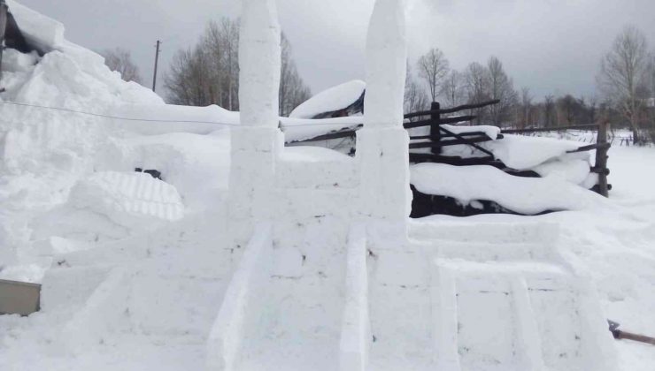 Sivas’ın Kızılelma köyünde yaşayan bir vatandaş uzak olduğu için gidemediği Sivas’ın sembollerinden olan Çifte Minareli Medrese’nin kardan maketini yaparak özlemini giderdi.
