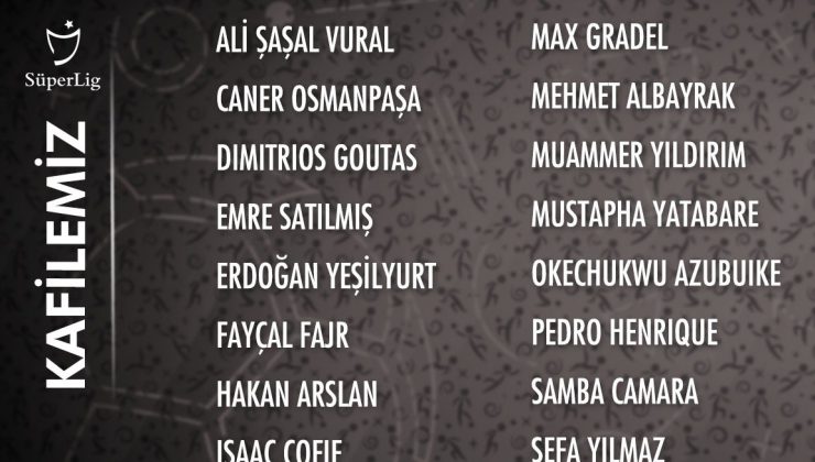 Ali Şaşal Vural, Ahmet Oğuz, Caner Osmanpaşa, Dimitrios Goutas, Emre Satılmış, Erdoğan Yeşilyurt, Fayçal Fajr, Hakan Arslan, Isaac Cofie, Jorge Felix, Kerem Atakan Kesgin, Koray Altınay, Mehmet Albayrak, Muammer Yıldırım, Mustapha Yatabare, Azubuıke, Pedro Henrique, Samba Camara, Sefa Yılmaz, Uğur Çiftçi, Ziya Erdal.