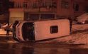 Üsküdar’da karlı yolda kontrolünü kaybeden servis yan yattı